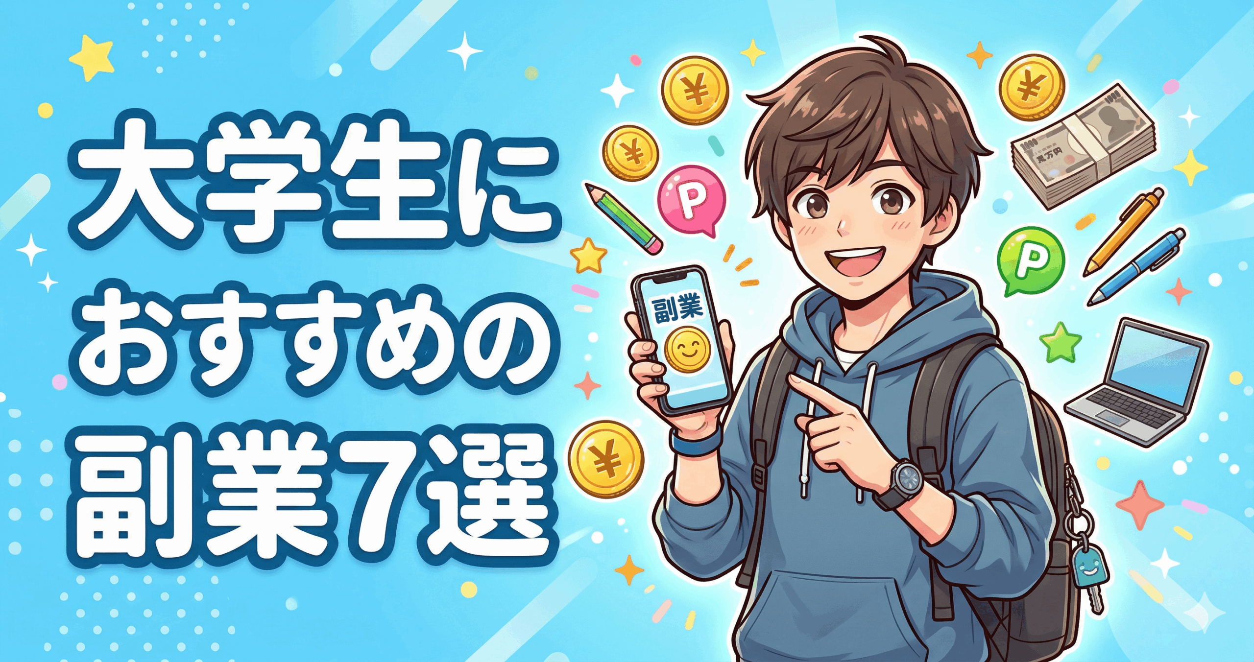 大学生におすすめの副業は「ポイントサイト」「アンケートサイト」「Webライター」など。 スキルゼロ・初期費用なしで今日から始められるものを厳選して紹介します。 ...