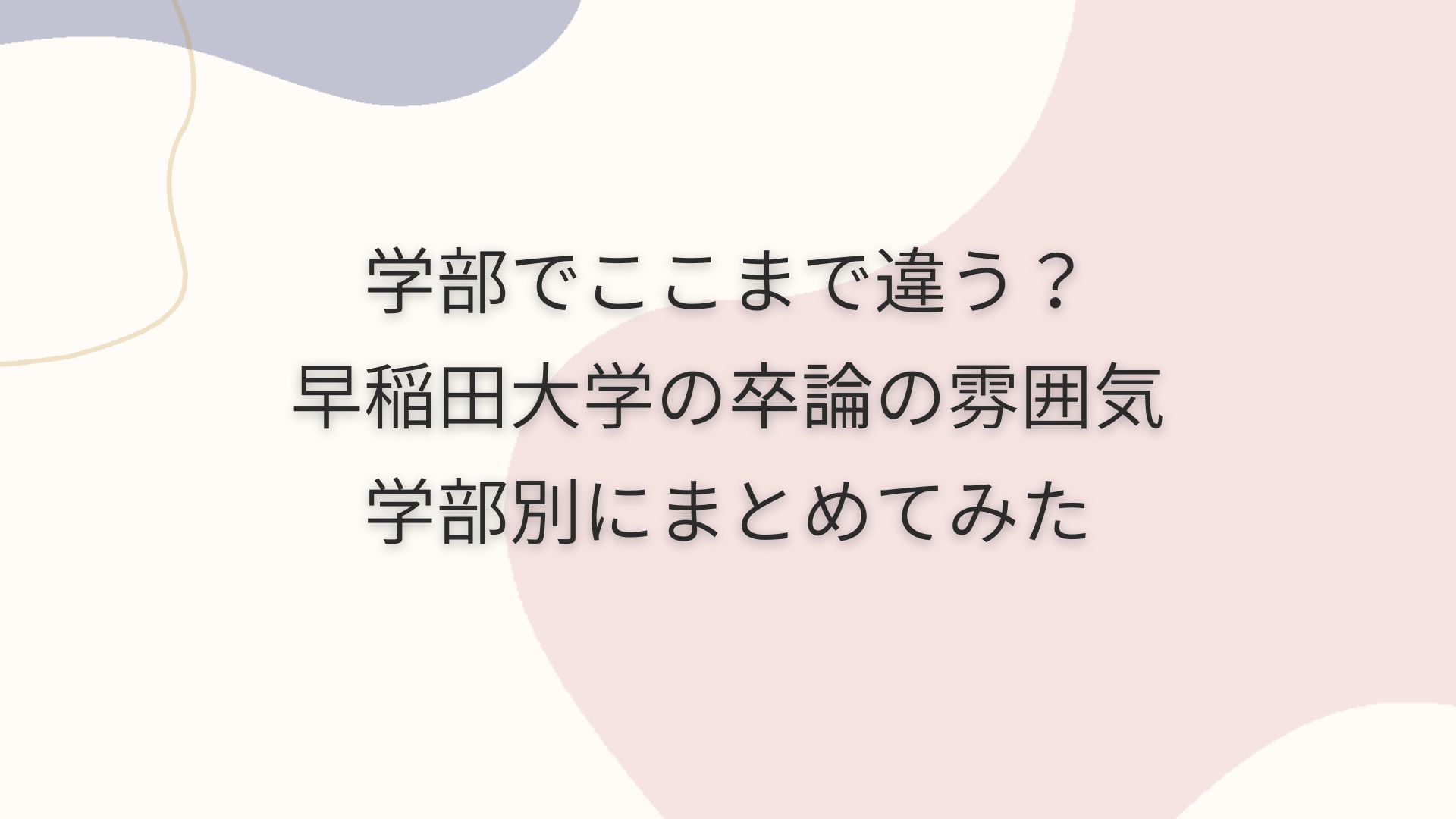 早稲田大学の卒論は というイメージを持っていませんか。 実際は、学部によって卒論の位置づけや重さ、求められる姿勢はかなり違います。 早稲田の卒論のリアルを知るこ...