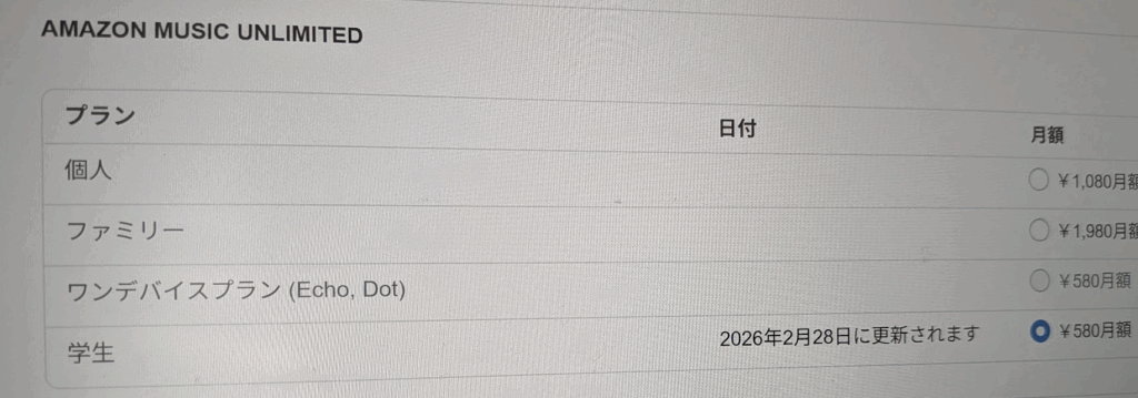 大学生はAmazon Musicの学生プラン(580円)を利用できるのに、私はそれを知らず、通常料金でずっと払っていました。