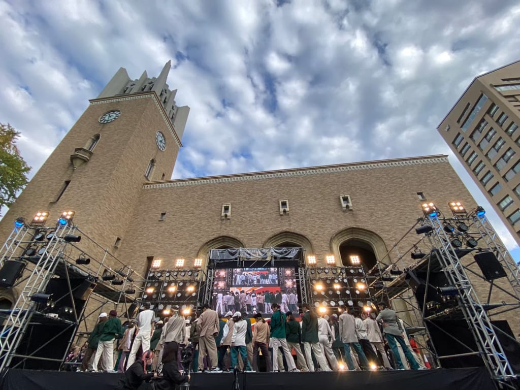 バックグラウンドで堂々と聳え立つ大隈講堂と大きなステージのコントラストがとても美しく、早稲田大学の文化や雰囲気を非常に感じることのできる素敵なステージなんです🎶